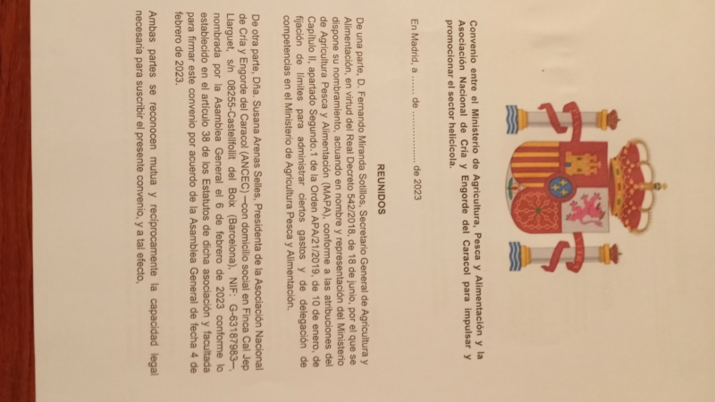 Recientemente se ha firmado el convenio de colaboración entre ANCEC y el Ministerio de Agricultura, Pesca y Alimentación para impulsar y promocionar del sector helicícola en España. Esperamos que sea una herramienta útil para dichos fines. https://boe.es/boe/dias/2023/12/01/pdfs/BOE-A-2023-24600.pdf