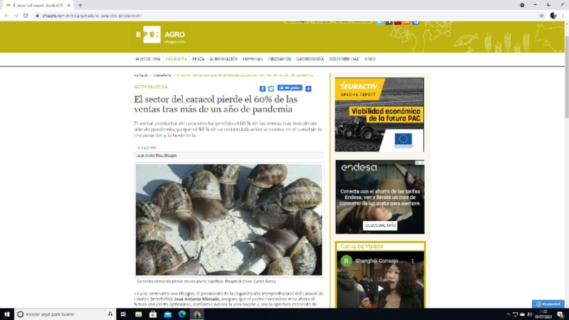 Entrevista al Secretario ejecutivo de la Asociación Interprofesional del Caracol de Crianza: El sector del caracol pierde el 60% de las ventas tras más de un año de pandemia